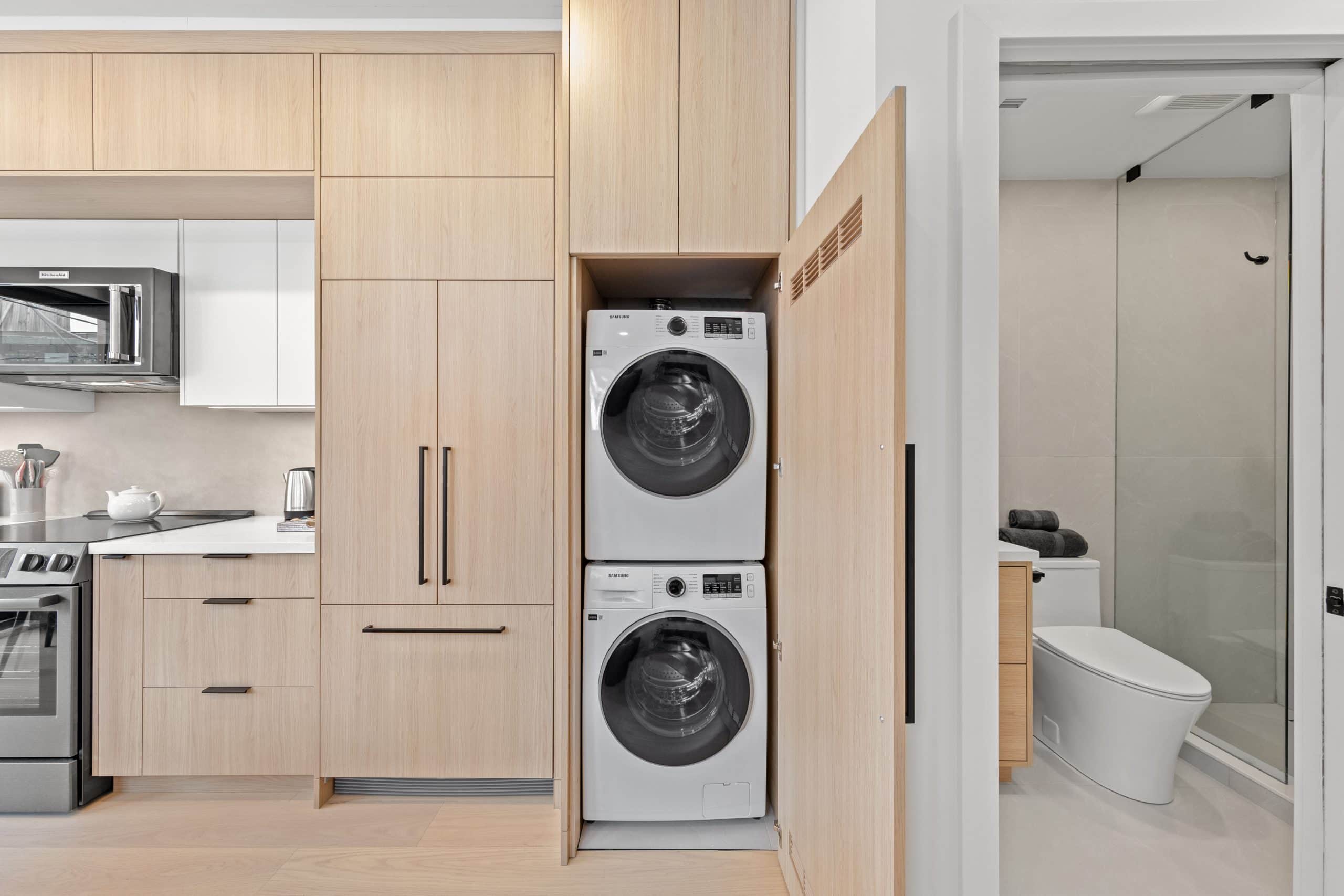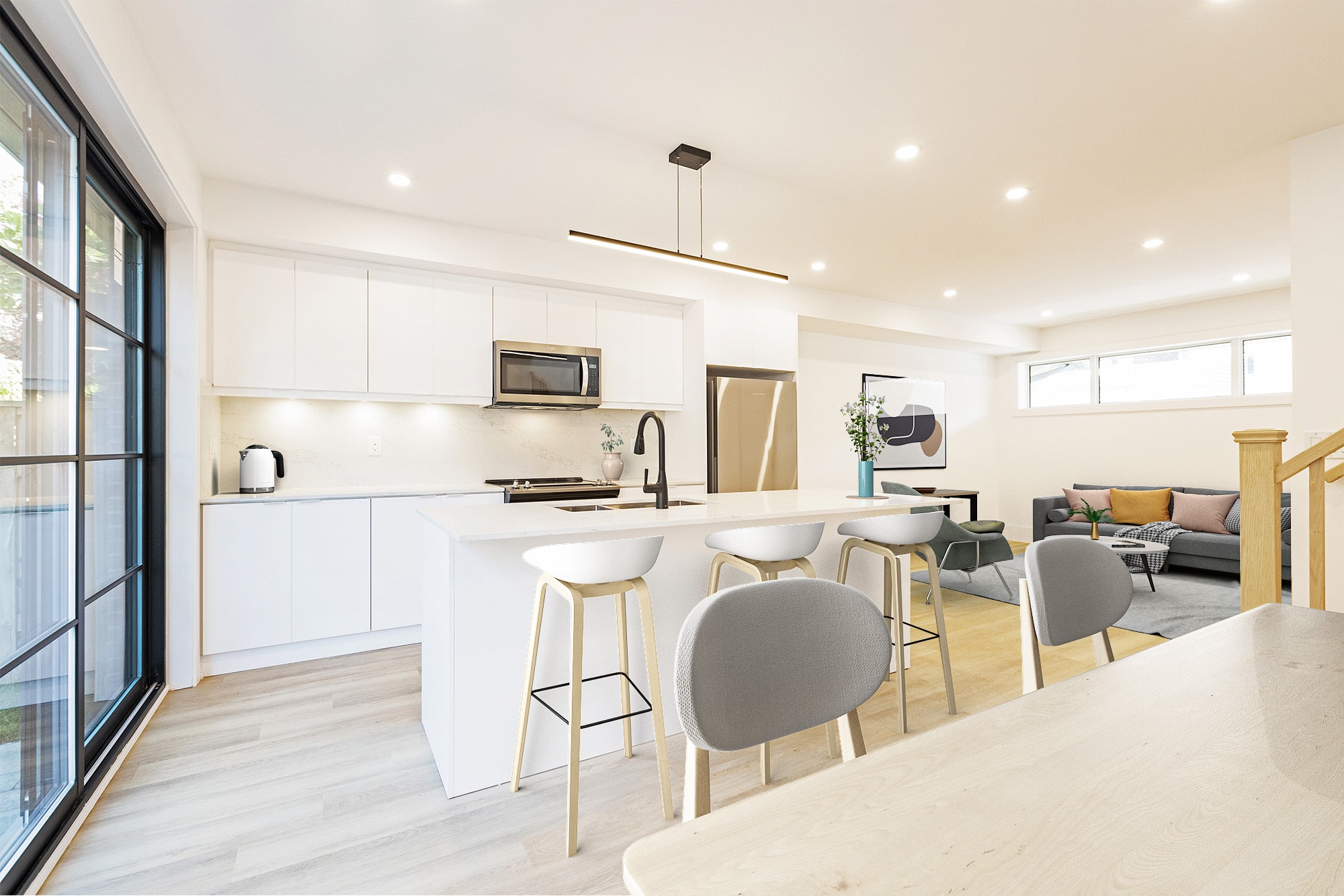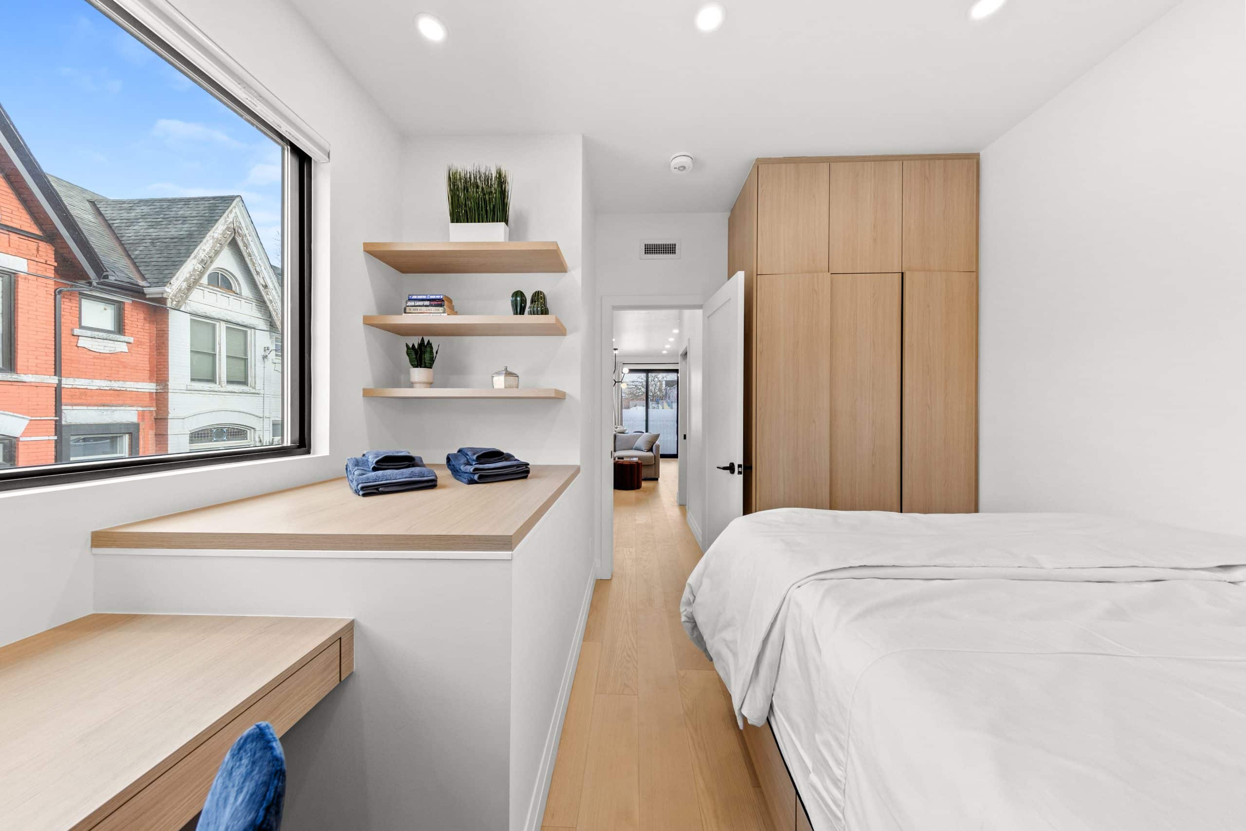 This modern, 2-storey laneway house project can be found in Toronto’s famous Queen West neighbourhood. Designed as a long-term family-oriented rental, the building features a ground floor living space and a covered parking pad adjacent the laneway.